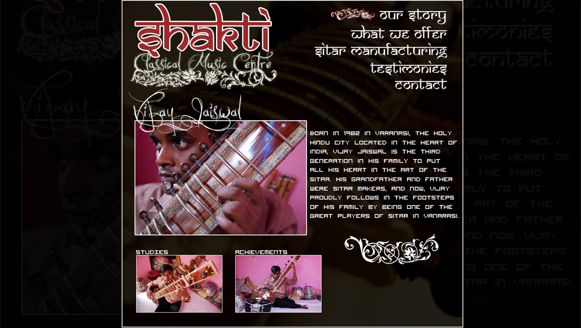 Located in the Holy city of Varanasi, India, the Shakti Classical Music School is one of the most acclaimed learning center in the city. In the maze of the ghats, dwells Vijay Jaiswal, lead instructor of Shakti. He is ready to bring you closer to the sacred ragas of ancient india, with the modern flair that allowed him to perform for international movies. We built their website free of charge as part of our CSR program.